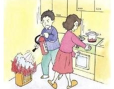 - 02큰 흔들림이 멈췄을 때!!! 크게 흔들릴 때는 요리중인 그릇 등이 떨어 질 수 있어 대단히 위험하므로 큰 흔들림이 멈춘 후, 또 “불을 꺼라!” 라고 소리를 쳐서 불을 끕시다.
